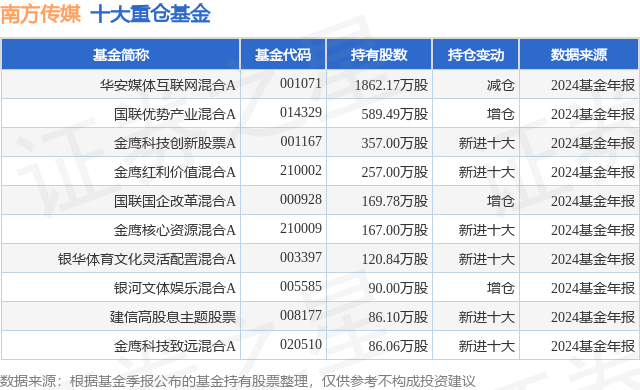重仓南方传媒的前十大公募基金请见下表: